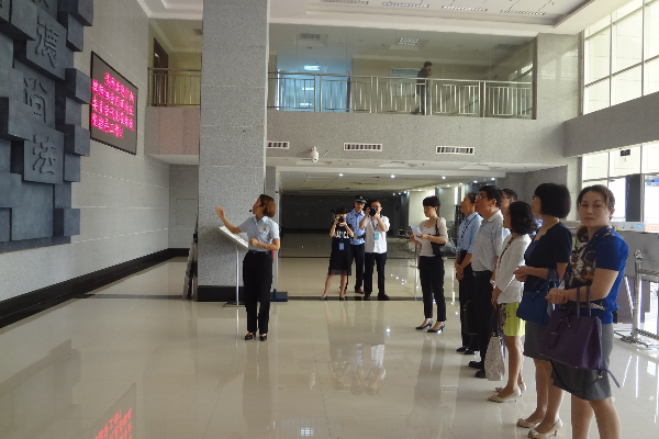 南宁市良庆区人民法院于健副院长、民一庭李愿庭长及家事审判团队的法官带领刘晰主任一行11人参观了法院的诉讼服务大厅、家事审判中心和少年法庭。民商委 的委员们对良庆区人民法院家事审判中心设置的家事法庭、家事调解工作室、家事多功能工作室、家事文化长廊等专门场所给予高度评价,认为中心一改以往的传统 法庭模式,家事法庭的布置以暖色调为主,铺设地毯、摆放沙发、茶几、书架、绿植和书画等,弱化了传统审判场所的庄严肃穆,营造出浓厚的家庭氛围。