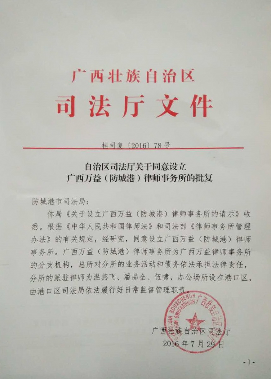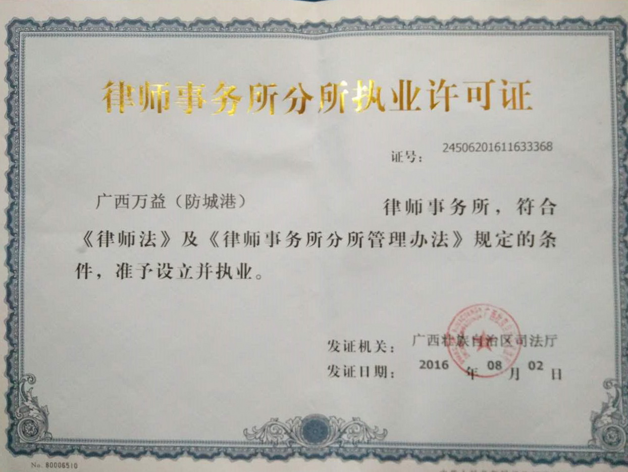 二十余年风雨兼程,广西万益律师事务所秉承“高效、优质,共建、共享”的理念,不断发展壮大,2005年、2011年、2016年三次被评为全国优秀律师事务所。2016年8月4日,经广西壮族自治区司法厅批准,广西万益(防城港)律师事务所正式成立了!