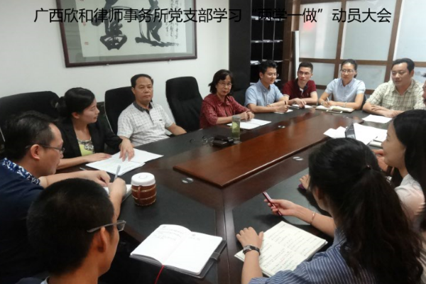 5月17日,广西欣和律师事务所党支部召开“两学一做”学习教育动员会。会上,支部书记王少锋传达了广西律师协会党组关于开展“两学一做”学习教育的会议精神。陆有清主任对支部开展“两学一做”学习教育提出了具体要求。